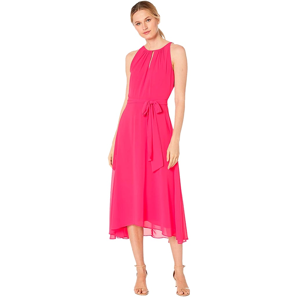 Ilumina la habitación con este vestido midi sin mangas de gasa con abertura en forma de A.
